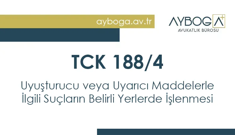 Türk Ceza Kanunu’nun 188. maddesinin 4. fıkrası (TCK 188/4), uyuşturucu veya uyarıcı madde imal, ithal, ihraç, satış, sevk, nakil, bulundurma gibi suçların belirli mekânlarda işlenmesi halinde daha ağır cezai yaptırım uygulanacağını düzenlemektedir. Kanun koyucu, suçun işlendiği yerin toplum üzerindeki etkisini dikkate alarak bu fiillerin bazı alanlarda işlenmesini ağırlaştırıcı neden olarak kabul etmiştir.