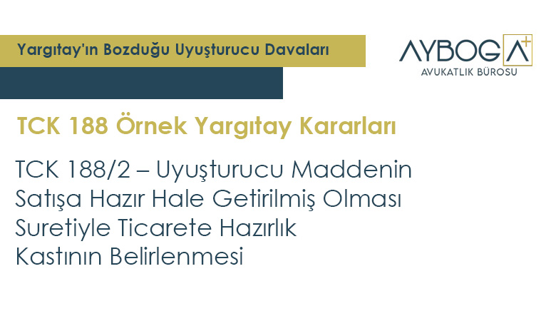 TCK 188/2 – Uyuşturucu Maddenin Satışa Hazır Hale Getirilmiş Olması Suretiyle Ticarete Hazırlık Kastının Belirlenmesi
